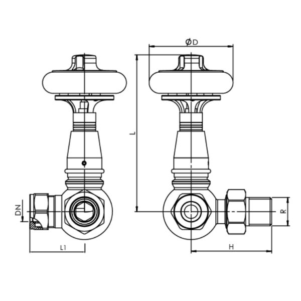 Classic Traditional Radiator Valves Corner Type 1/2'' For 15mm Copper Pipe With Wax Sensor